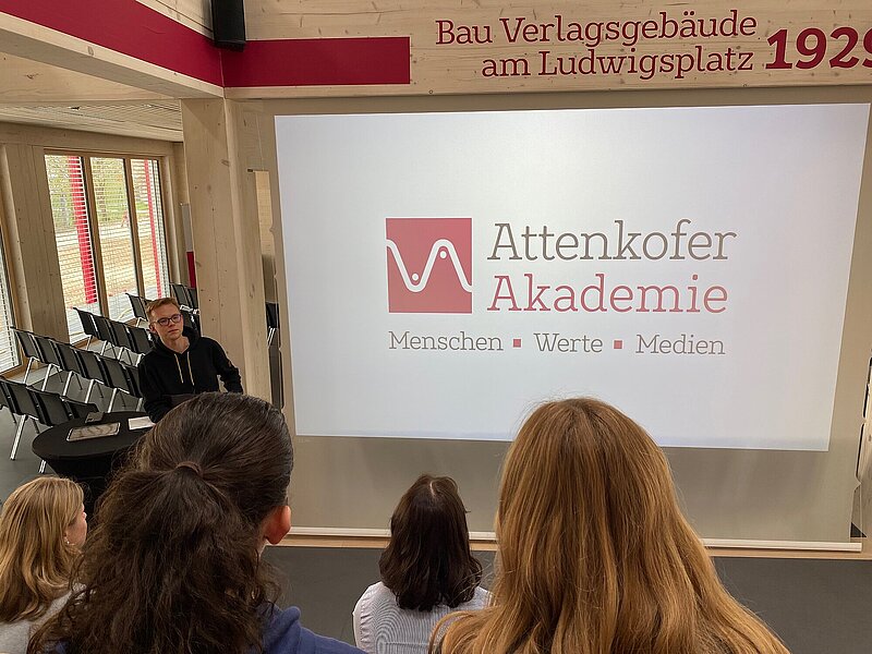 Im Rahmen des Deutschunterrichts setzte sich eine Gruppe von Schülerinnen und Schülern der Q12 auf einer Exkursion mit der Rolle der Medien in der Gesellschaft auseinander. Ziel war die Attenkofer Akademie in Straubing, die als außerschulischer Lernort gezielt Medienkompetenz fördert. Inhaltlich knüpfte der Besuch an das Oberstufenthema „Sprache in politisch-gesellschaftlichen Verwendungszusammenhängen“ an und ermöglichte eine praxisnahe Vertiefung.