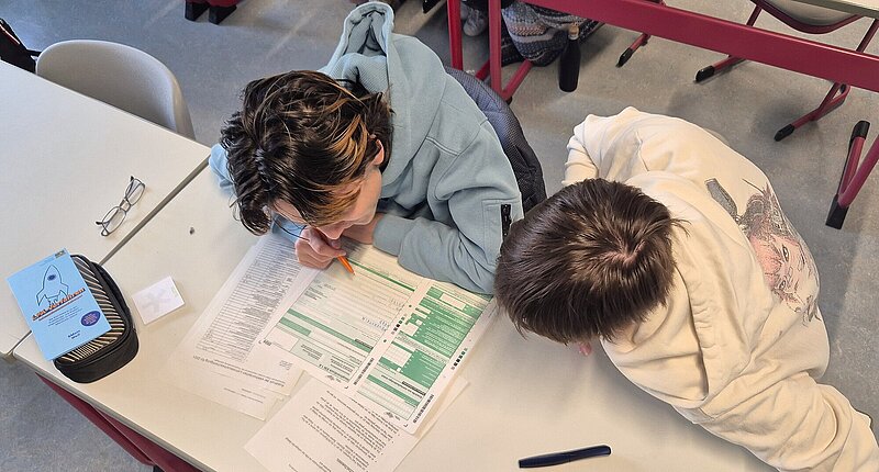 Besonders spannend war dann der zweite Baustein, in dem eine praktische Anleitung zur Erstellung einer Einkommensteuererklärung gegeben wurde. Die Damen Pfeilschifter und Fechter führten anhand eines konkreten Falles Schritt für Schritt durch den Prozess und erklärten, welche Unterlagen benötigt werden und wie man sie richtig ausfüllt. Diese praxisnahe Herangehensweise ermöglichte es den Teilnehmenden, sich besser auf ihre zukünftigen steuerlichen Verpflichtungen vorzubereiten und unter Umständen das Geld, welches beim letzten Ferienjob von Seiten des Finanzamts einbehalten wurde zurückzufordern.